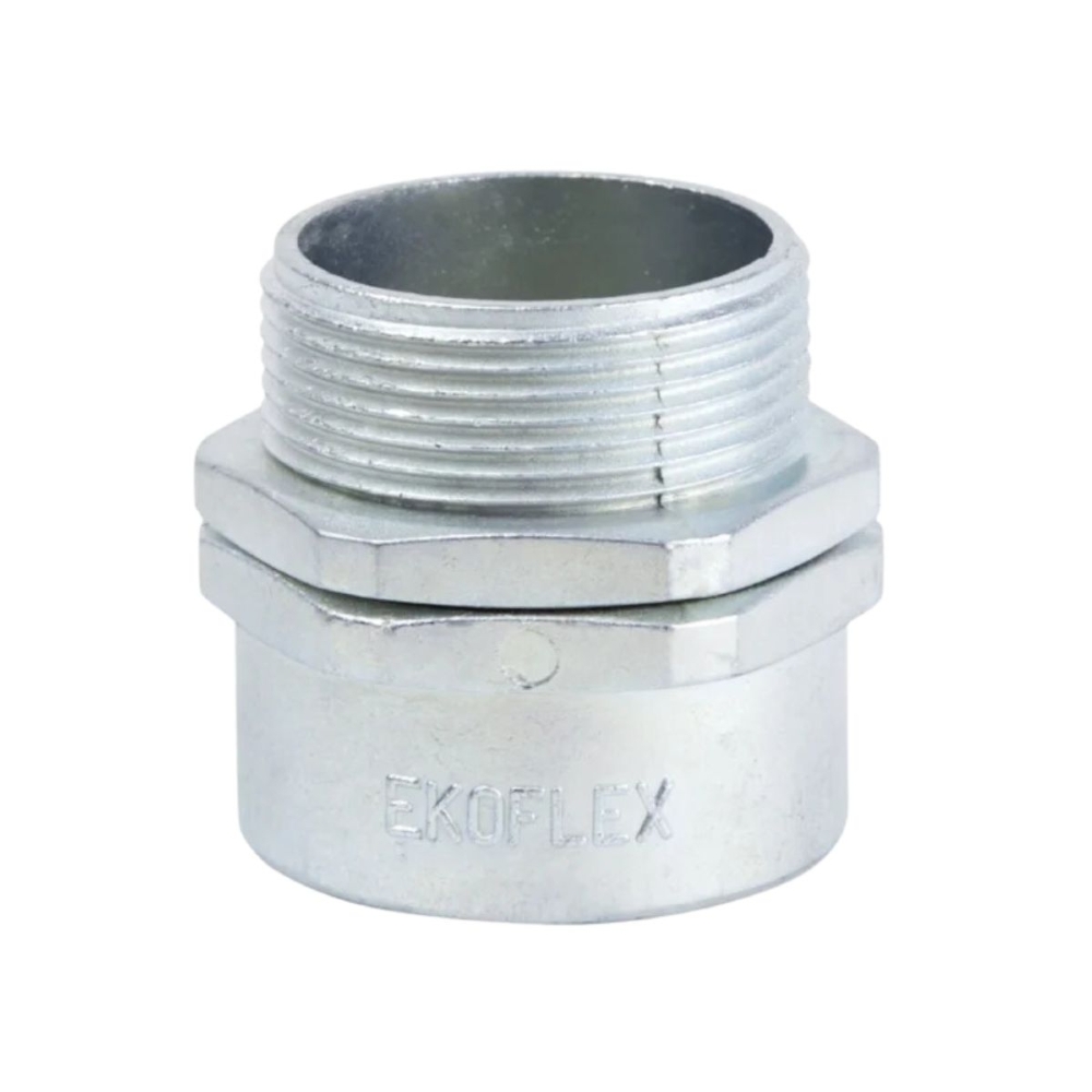 Conector Eletroduto Macho Reusável Zamak Zincado 1.1/2 Polegadas Rosca Bsp Reto Fixo Ip54 Kmra - Ekoflex