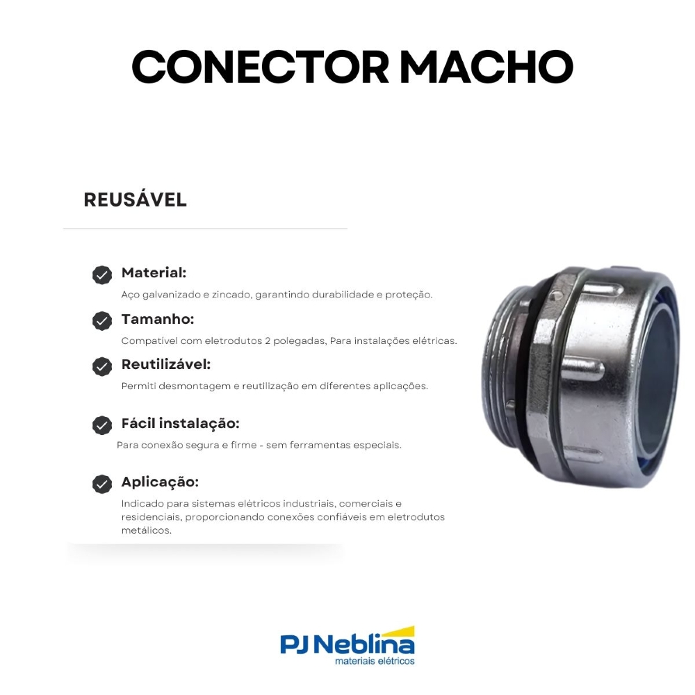 - Tamanho: Compatível com eletrodutos de 2 polegadas, ideal para instalações elétricas robustas.