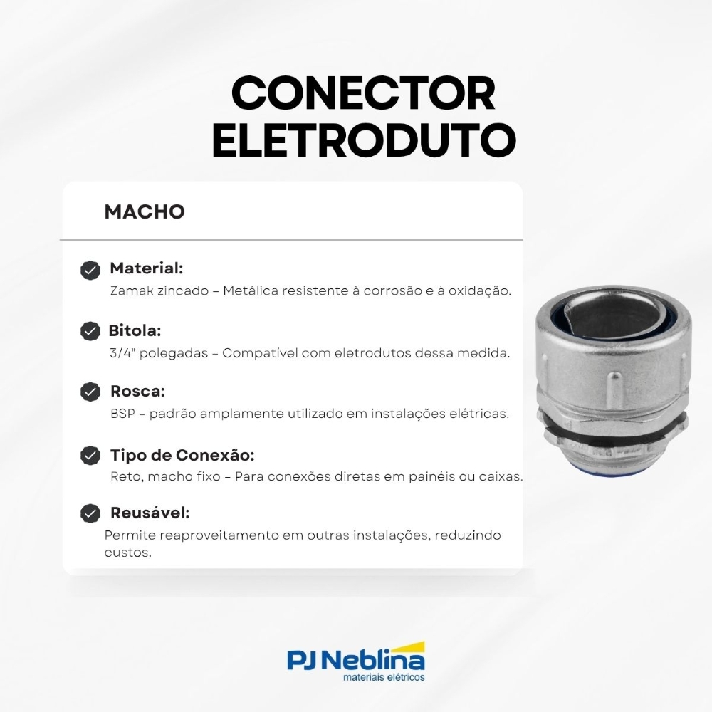 • Bitola: 3/4" polegadas – compatível com eletrodutos dessa medida.