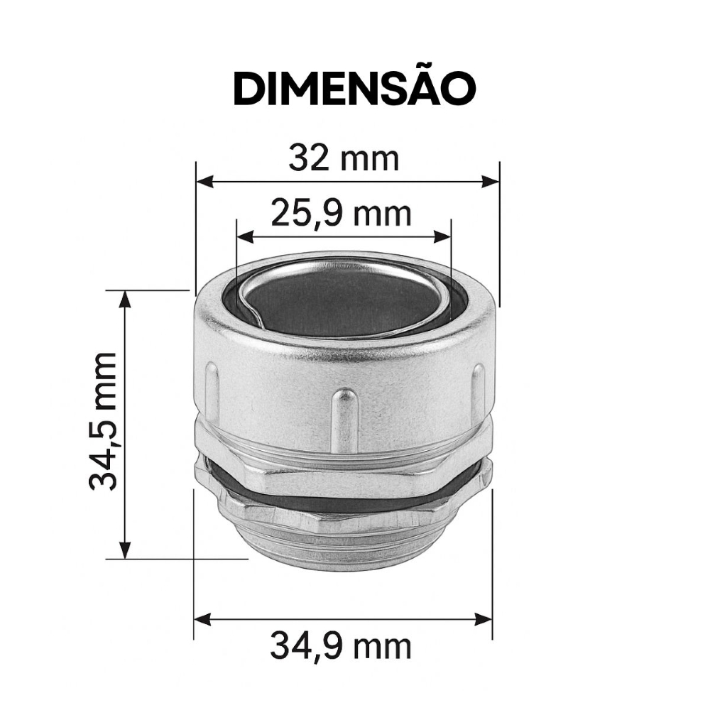• Norma de Fabricação: Compatível com exigências técnicas para instalações de eletrodutos flexíveis ou corrugados metálicos.