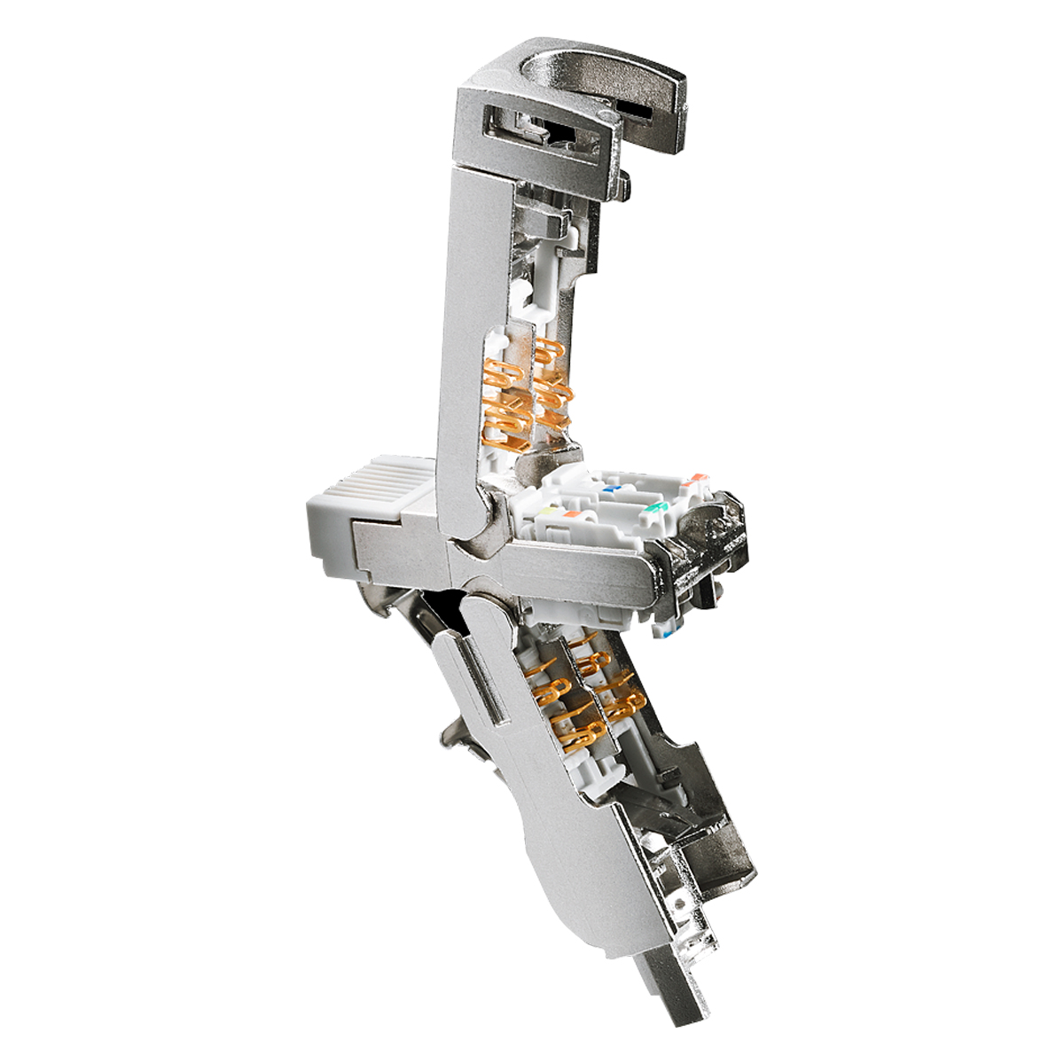 - Para cabos Industrial Ethernet FC TP: contatos de corte/borne integrados para cabos de instalação TP FC de 8 fios (AWG24) e 4 fios (AWG22)