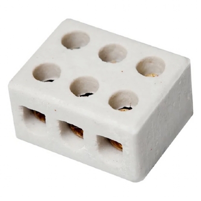 Conector Porcelana Para Fio Até 10mm Branco Com 3 Bornes Até 350g 600V 30A Sindal