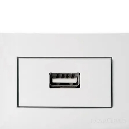 Conjunto 1 Tomada Usb Carregador Horizontal 2A Bivolt 65x45mm Branca Sleek Para Moveis Margirius