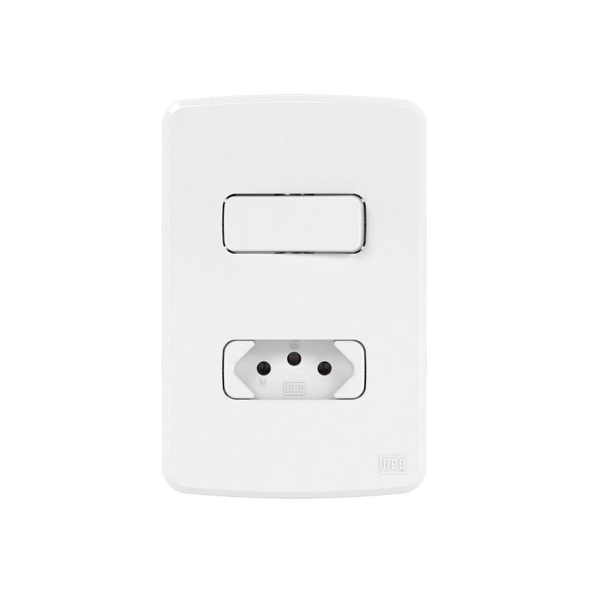 Conjunto 1 Interruptor Paralelo + 1 Tomada 2P+T Distanciados 10A 250V C/Placa 4X2 Branco Compose - Weg - Código Fabricante: 13272554
