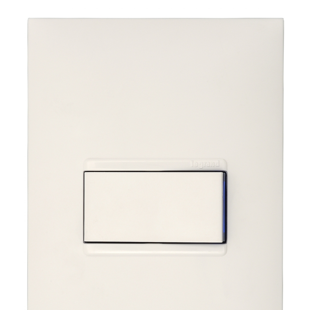Possui um visor lateral azul para trazer tecnologia e modernidade, sendo marca registrada da Legrand.