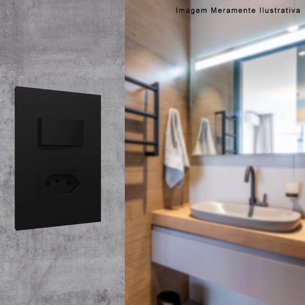 Conjunto Saída De Fio Horizontal De Parede 4x2 Black Satin 12343-9 Recta - Blux