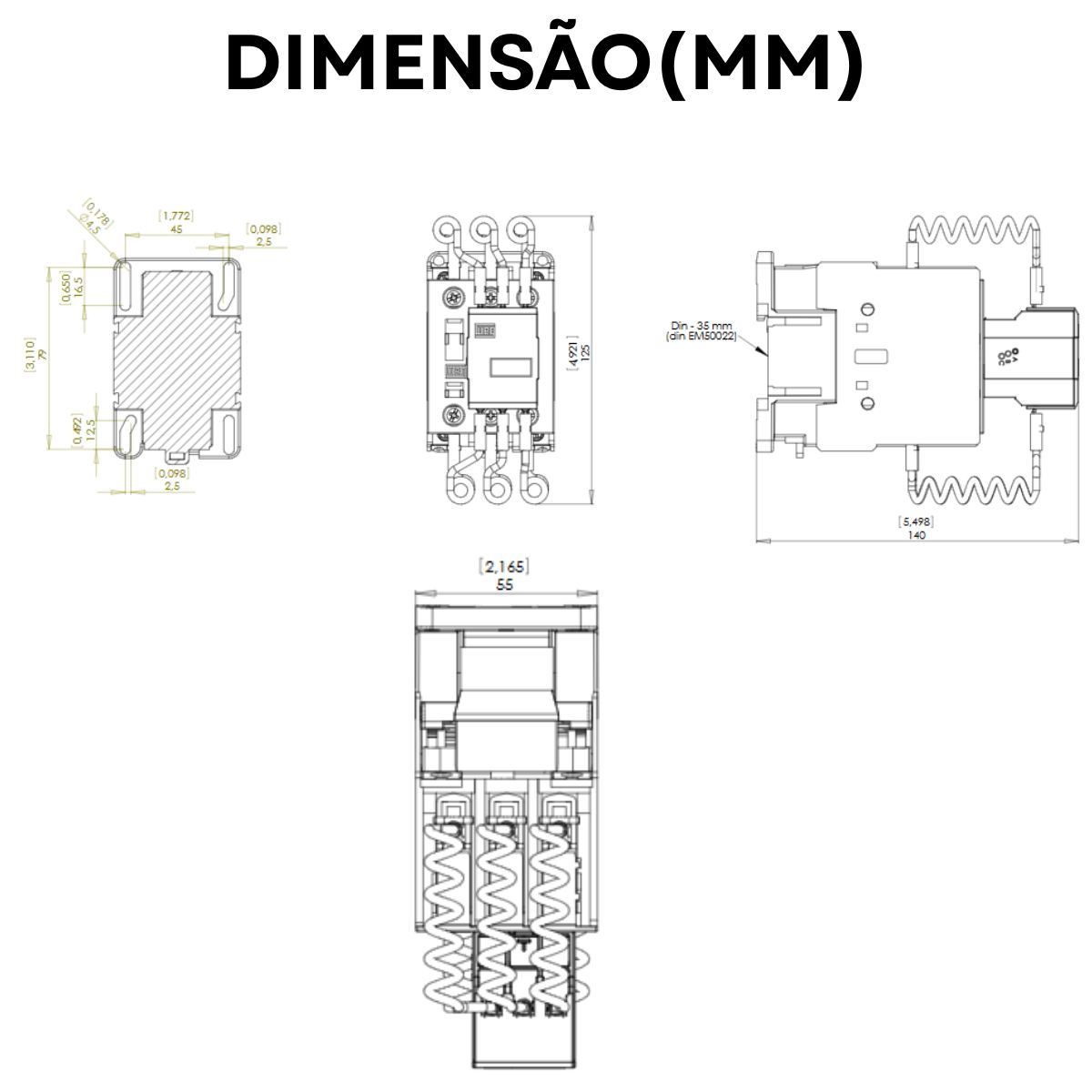 - Tensão da Bobina (Comando): 190-220V 50/60Hz. Esta é a tensão de controle necessária para energizar a bobina do contator e fazer com que ele ligue ou desligue.