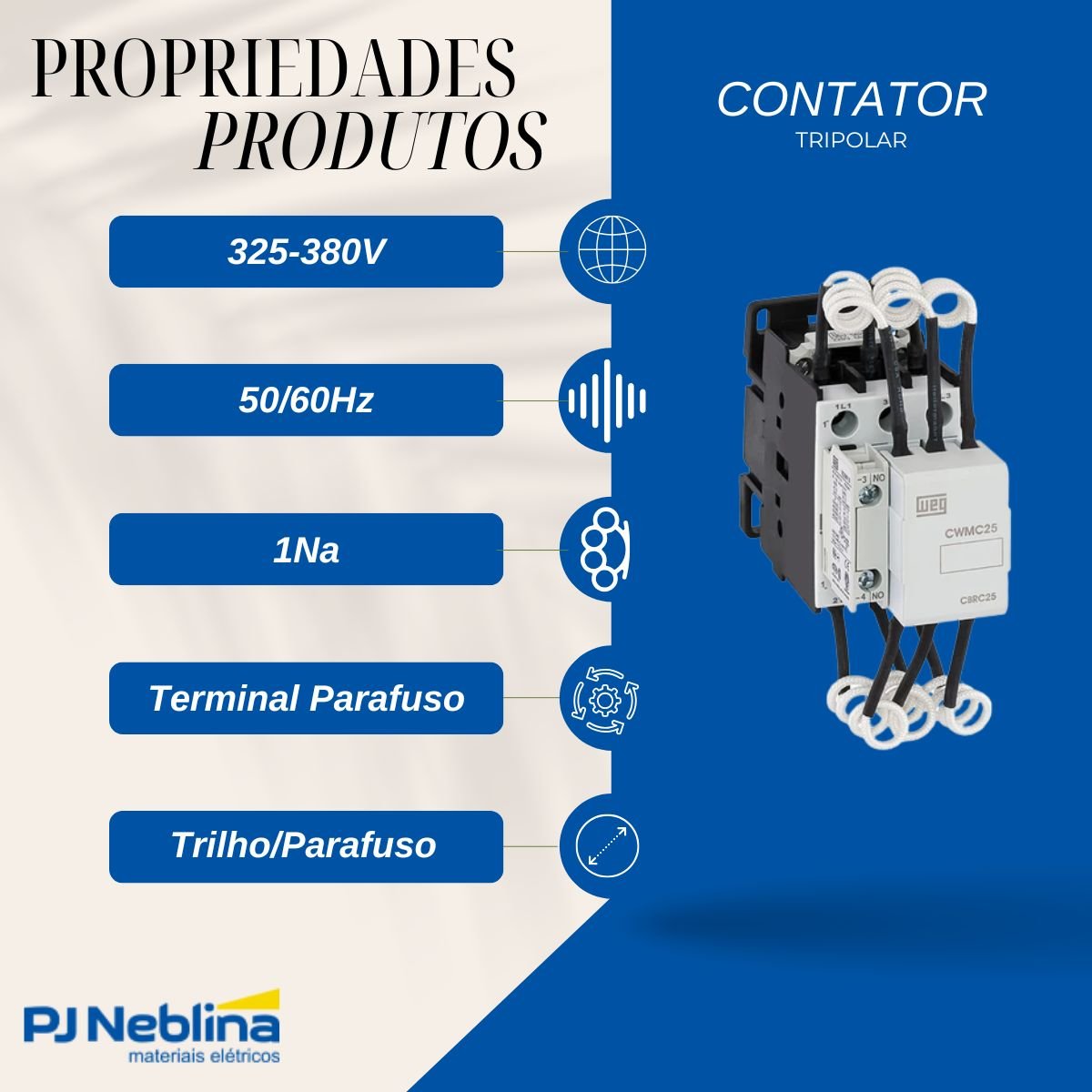 - Bobina para 325–380 V 50/60 Hz (conforme seu descritivo).