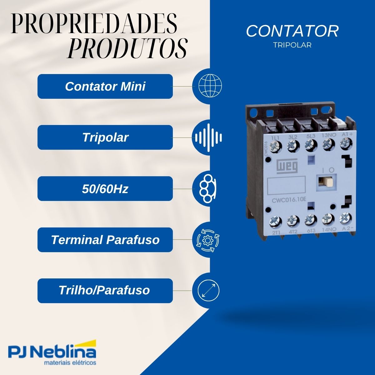 - Corrente Nominal de 16A: Adequado para o comando de motores de pequena potência, resistências ou outras cargas com correntes de até 16 Amperes.