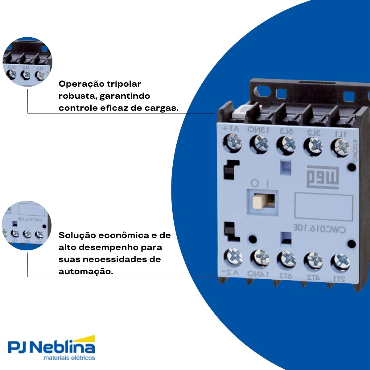 Contator Mini Potencia Tripolar 16A 12V 1Nf 50/60Hz - Weg - Código Fabricante: 12679778