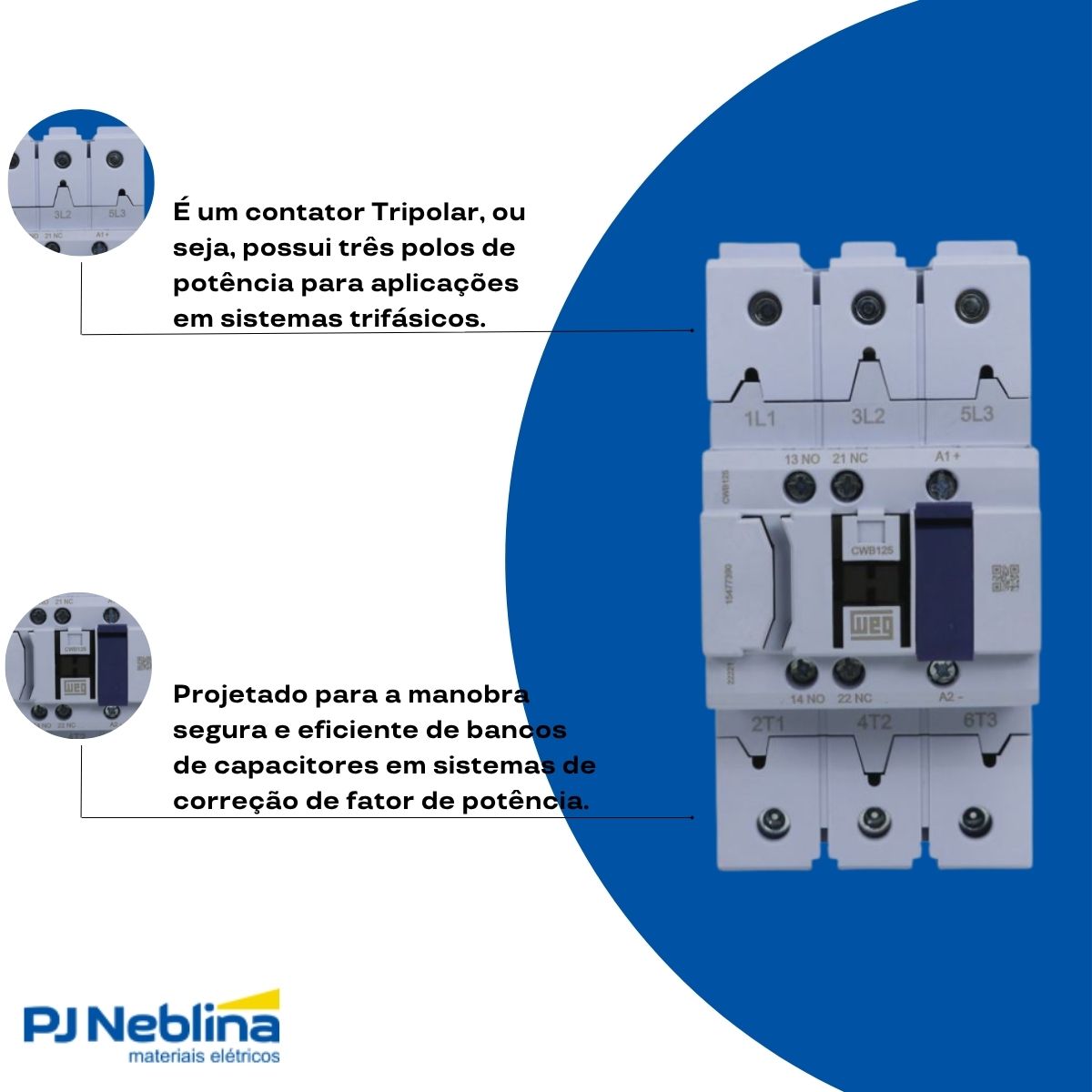 - Atuação Tripolar: Permite o controle simultâneo das três fases do sistema elétrico, adequado para acionamento de motores trifásicos e outras cargas.