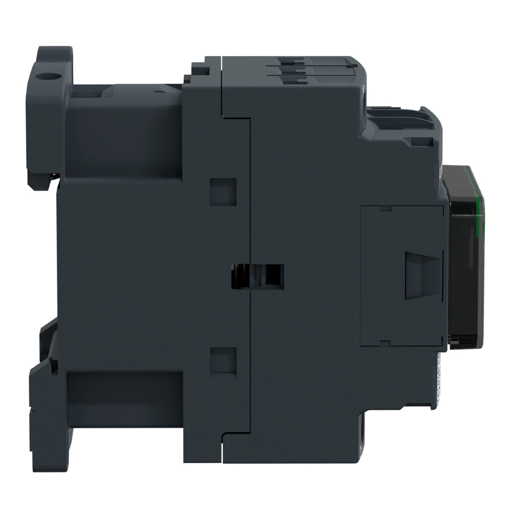 Ele fornece uma bobina de até 24V AC 50/60Hz , com contatos auxiliares integrados 1NA+1NF (certificado espelho NC) e conexão por terminais de parafuso. Este contator garante simplicidade e facilidade de instalação, é altamente resistente e compacto (45mm de largura). Possui uma taxa de operação de 3600 ciclos/hora em ambientes de ate 60°C, proporcionando alta confiabilidade e durabilidade. Além disso, tem proteção IP20 e montagem em trilho DIN ou fixação por parafuso.