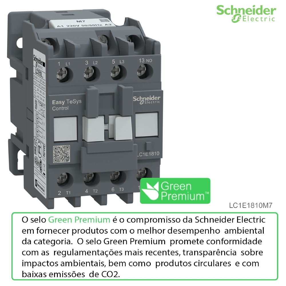 Com mais de 180 anos inovando e fazendo história, a Schneider Electric continua criando e desenvolvendo tecnologias inovadoras de confiabilidade, eficiência e de forma sustentável. Com o Contator LC1E1810M7, você aproveita o que tem de melhor da nossa tecnologia.