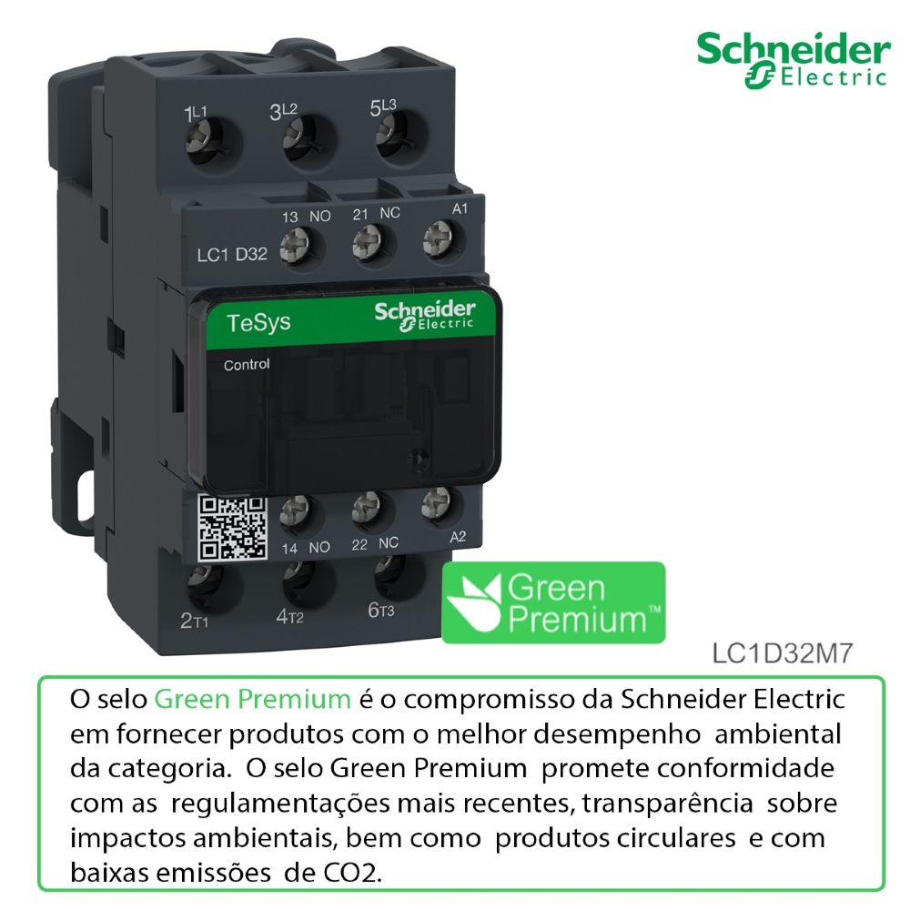Com mais de 180 anos inovando e fazendo história, a Schneider Electric continua criando e desenvolvendo tecnologias inovadoras de confiabilidade, eficiência e de forma sustentável. Com o Contator LC1D32M7, você aproveita o que tem de melhor da nossa tecnologia.