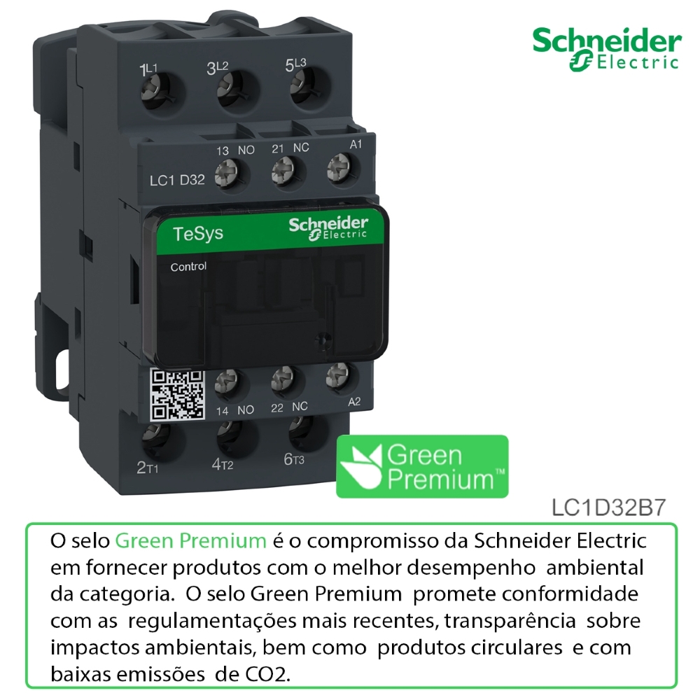 Com mais de 180 anos inovando e fazendo história, a Schneider Electric continua criando e desenvolvendo tecnologias inovadoras de confiabilidade, eficiência e de forma sustentável. Com o Contator LC1D32B7, você aproveita o que tem de melhor da nossa tecnologia.
