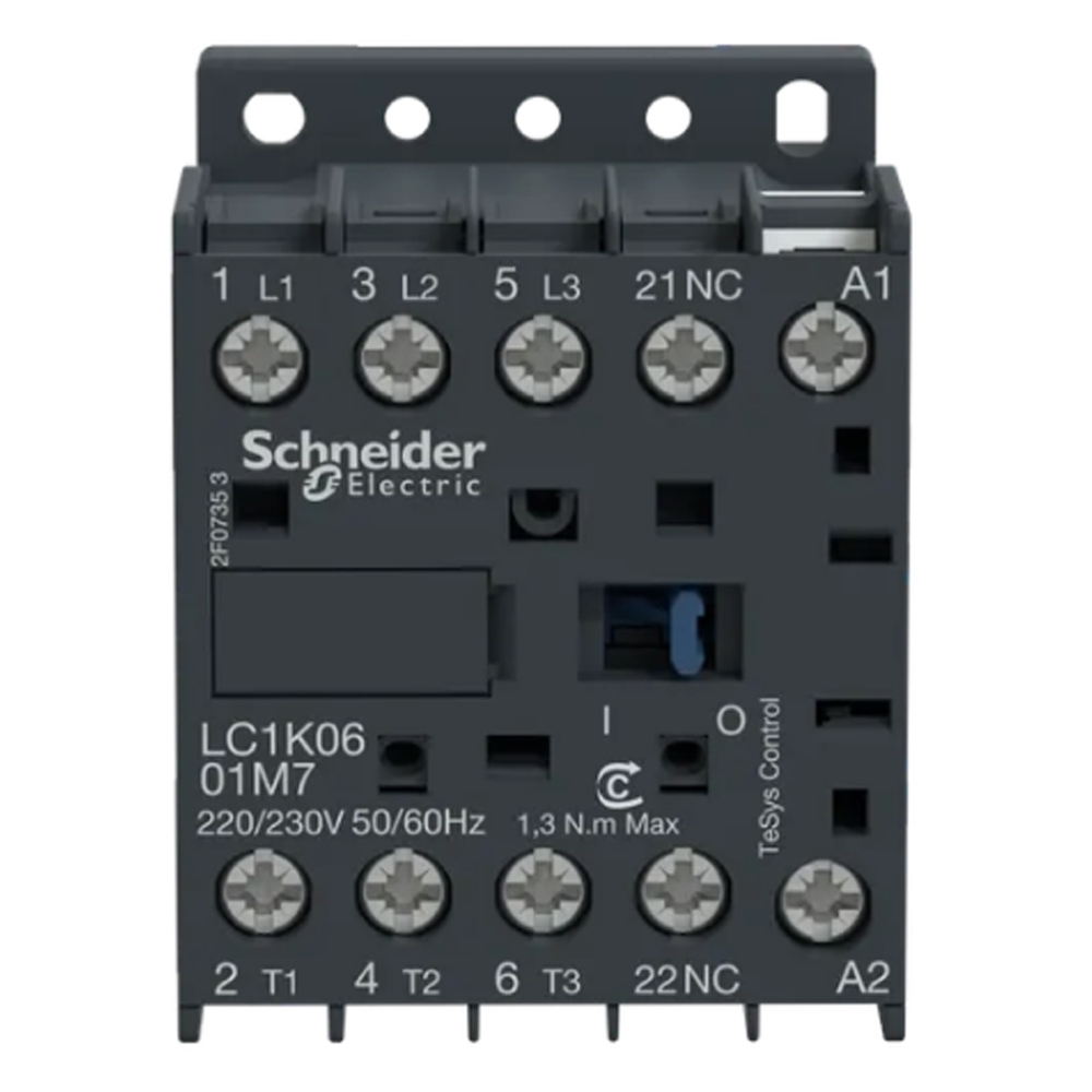 Contator Mini Potência Tripolar 6A 220V 1Nf 50/60Hz LC1K0601M7 Tesys K Schneider Electric