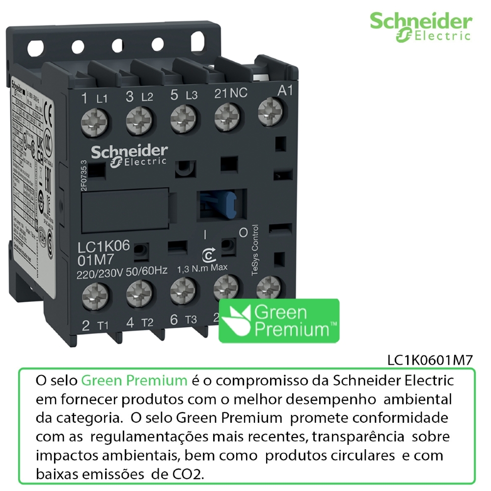 Com mais de 180 anos inovando e fazendo história, a Schneider Electric continua criando e desenvolvendo tecnologias inovadoras de confiabilidade, eficiência e de forma sustentável. Com o Contator Mini Potência Tripolar 6A 220V 1Nf 50/60Hz LC1K0601M7 Tesys K, você aproveita o que tem de melhor da nossa tecnologia.
