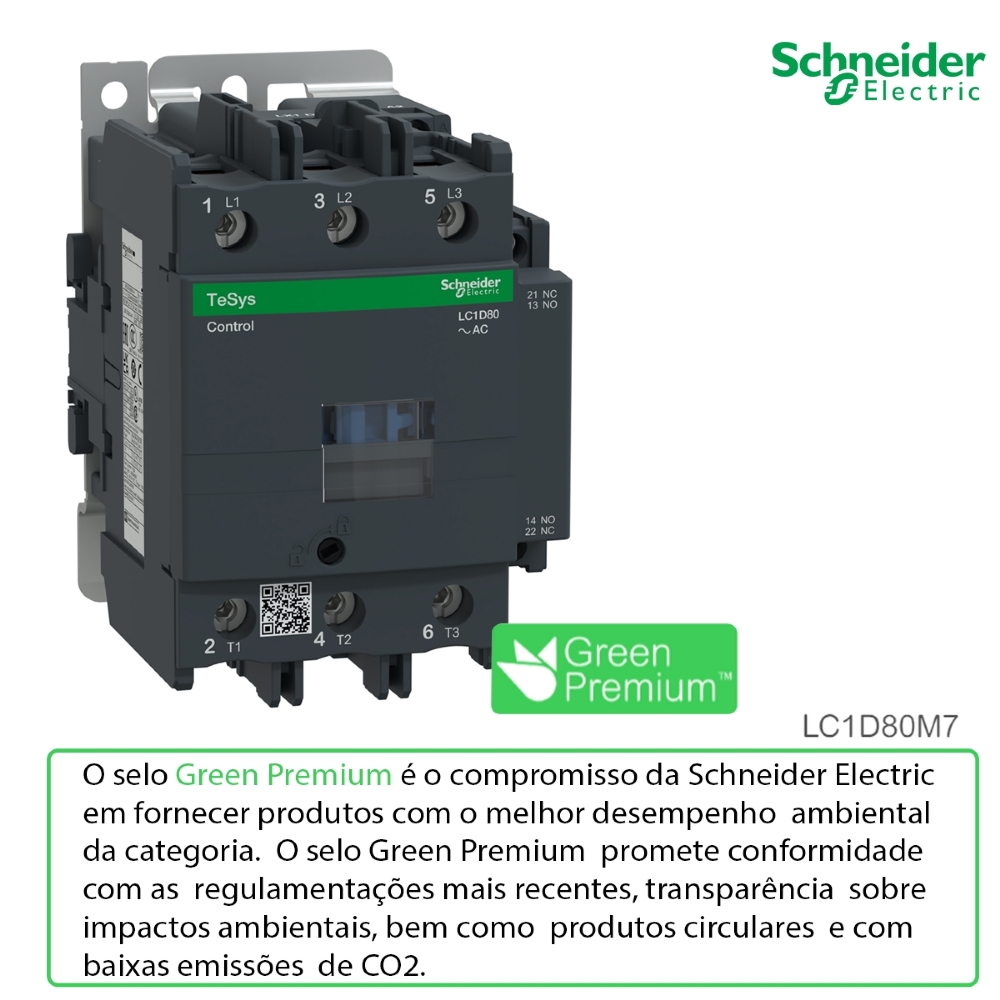 Com mais de 180 anos inovando e fazendo história, a Schneider Electric continua criando e desenvolvendo tecnologias inovadoras de confiabilidade, eficiência e de forma sustentável. Com o Contator LC1D80M7, você aproveita o que tem de melhor da nossa tecnologia.