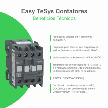 Com mais de 180 anos inovando e fazendo história a Schneider Electric continua criando e desenvolvendo tecnologias inovadoras de confiabilidade, eficiência e de forma sustentável. Com o Contator Potencia Tripolar 9A você aproveita o que tem de melhor da nossa tecnologia.