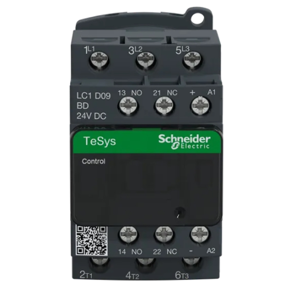 Contator Potência Tripolar 9A 24Vcc 1Na+1Nf LC1D09BD - Schneider Electric
