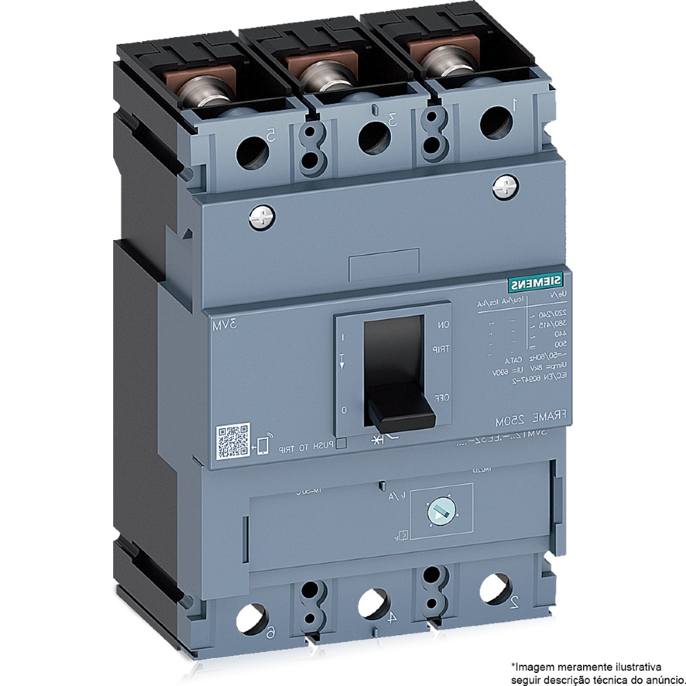 Disjuntor Caixa Moldada 3Vm Tripolar 250a 36Ka 415v Siemens