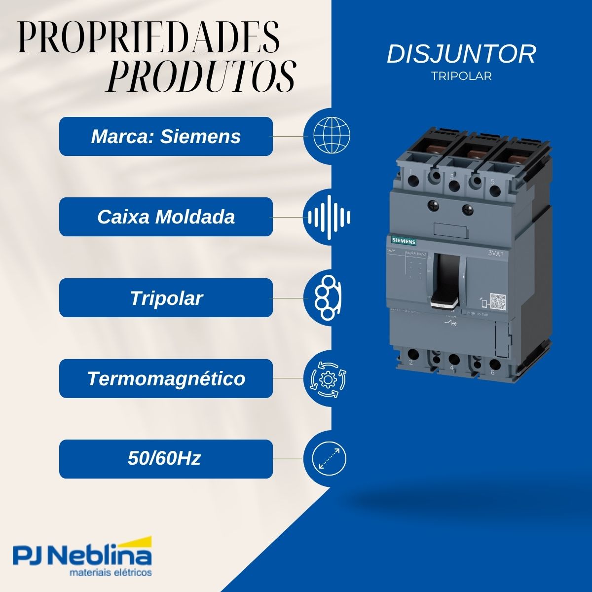 - Polos: Tripolar (3P), para proteção de sistemas elétricos trifásicos.