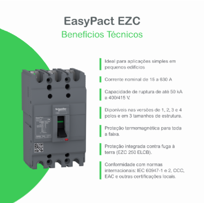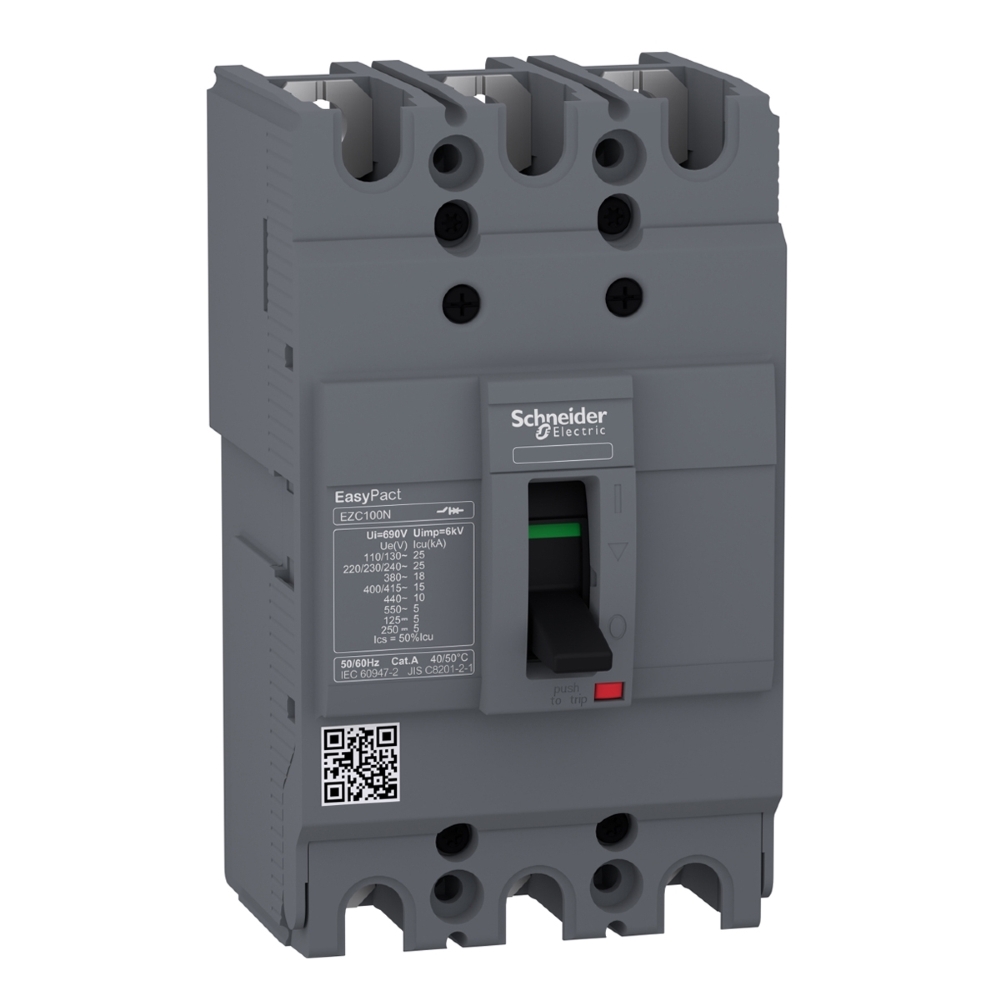 O EasyPact EZC100N é um disjuntor fixo de 3 polos projetado para a proteção de instalações elétricas de baixa tensão.