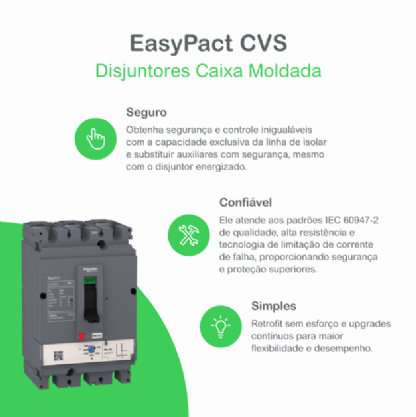 Com mais de 180 anos inovando e fazendo história, a Schneider Electric continua criando e desenvolvendo tecnologias inovadoras de confiabilidade, eficiência e de forma sustentável. Com o Disjuntor Caixa Moldada Tripolar 44,1-63A 25Ka 380/415V 50/60Hz Easypact Cvs100b, você aproveita o que tem de melhor da nossa tecnologia.