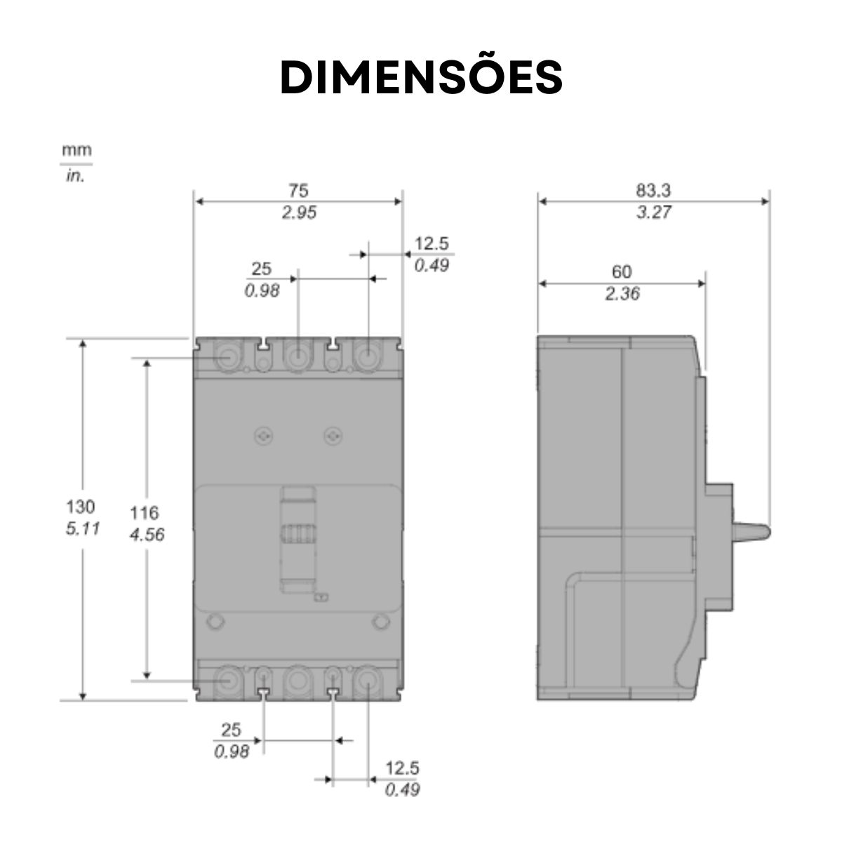 - Disjuntor tripolar de 63A, ideal para proteção de circuitos trifásicos.