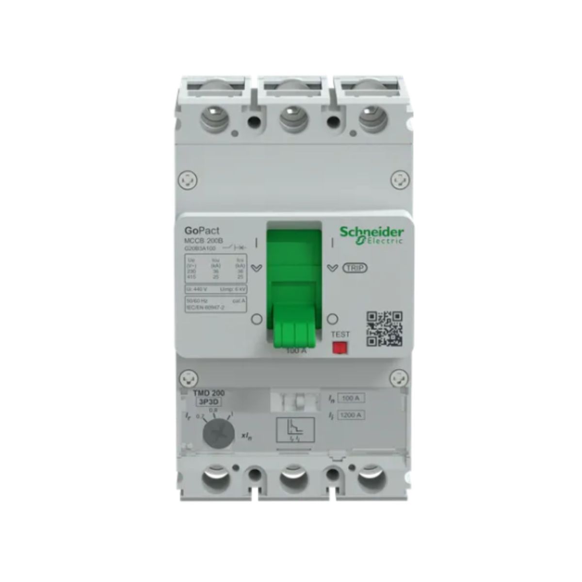 • Disjuntor caixa moldada tripolar modelo G20B3A100 da Schneider Electric, ideal para sistemas com maior demanda de corrente.