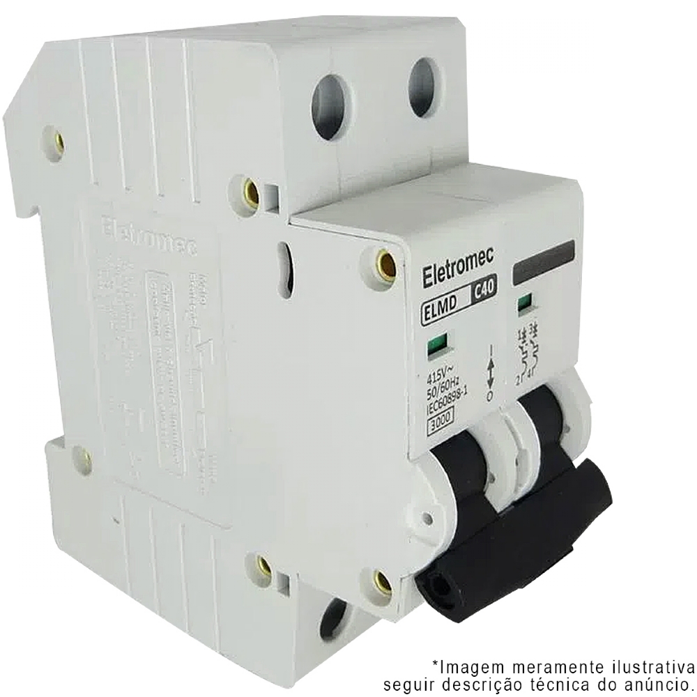 Disjuntor Mini Din Bipolar 10A Curva C 3Ka 400/440V Eletromec