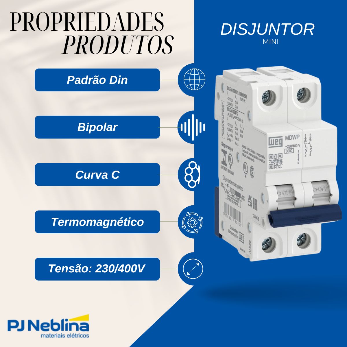 Disjuntor Mini Din Bipolar 25A Curva C 5Ka 230/400V - Weg