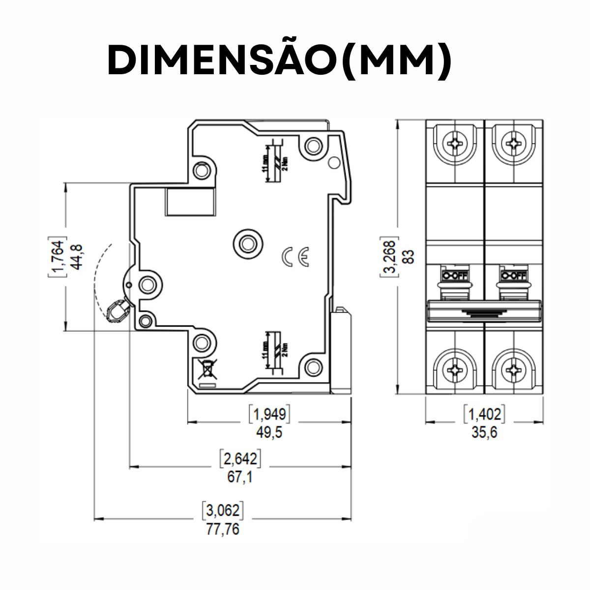 - Mini DIN: Indica o tamanho compacto do disjuntor e seu método de montagem padronizado.
