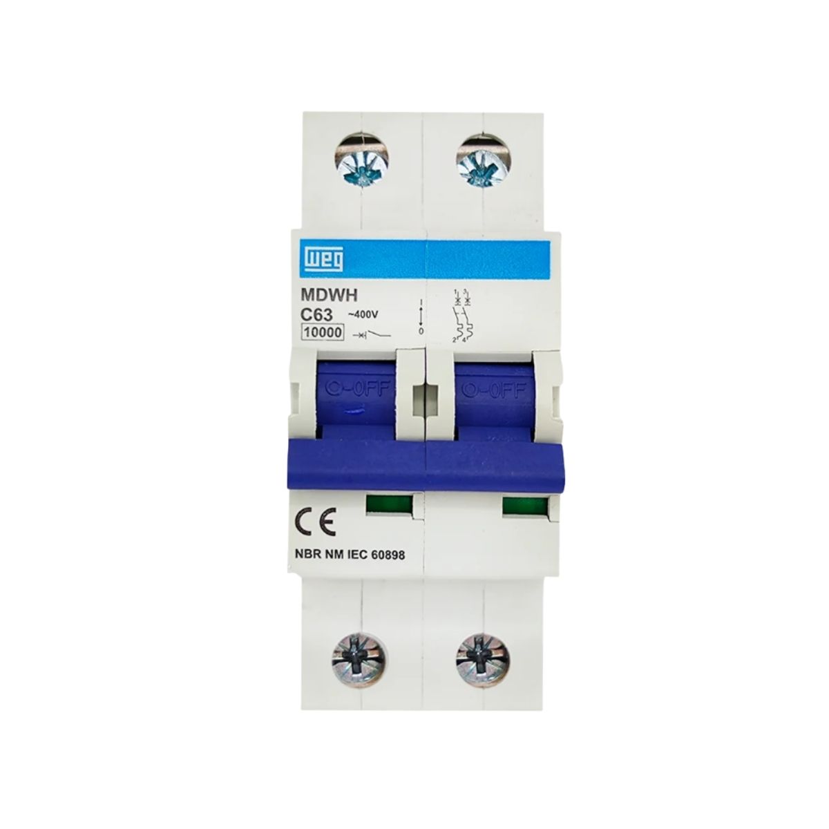 Disjuntor Mini Din Bipolar 63A Curva C 10Ka 230/400V - Weg - Código Fabricante: 11422728