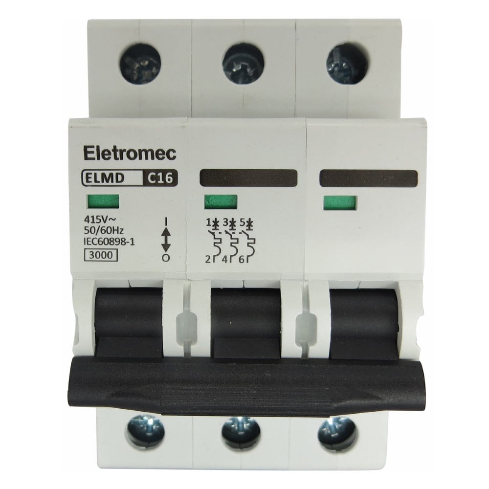 Disjuntor Mini Din Tripolar 16A Curva C 3Ka 400/440V Eletromec