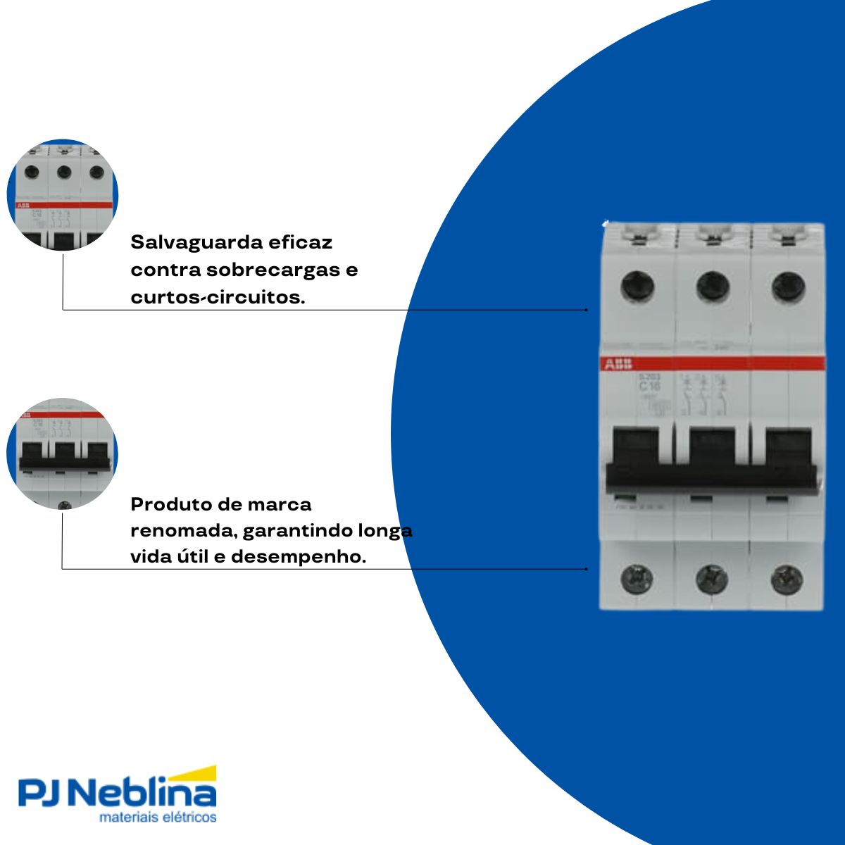 Disjuntor Mini Din Tripolar 16A Curva C 6Ka 230/400V - Abb - Código Fabricante: 2CDS253001R0164