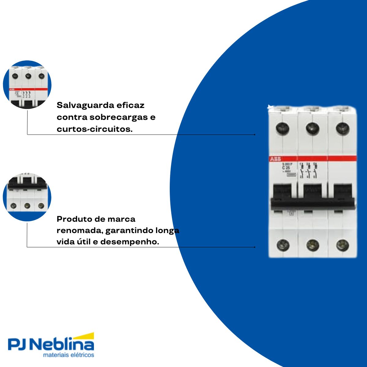 - Alta capacidade de interrupção (Icn) de 25kA.