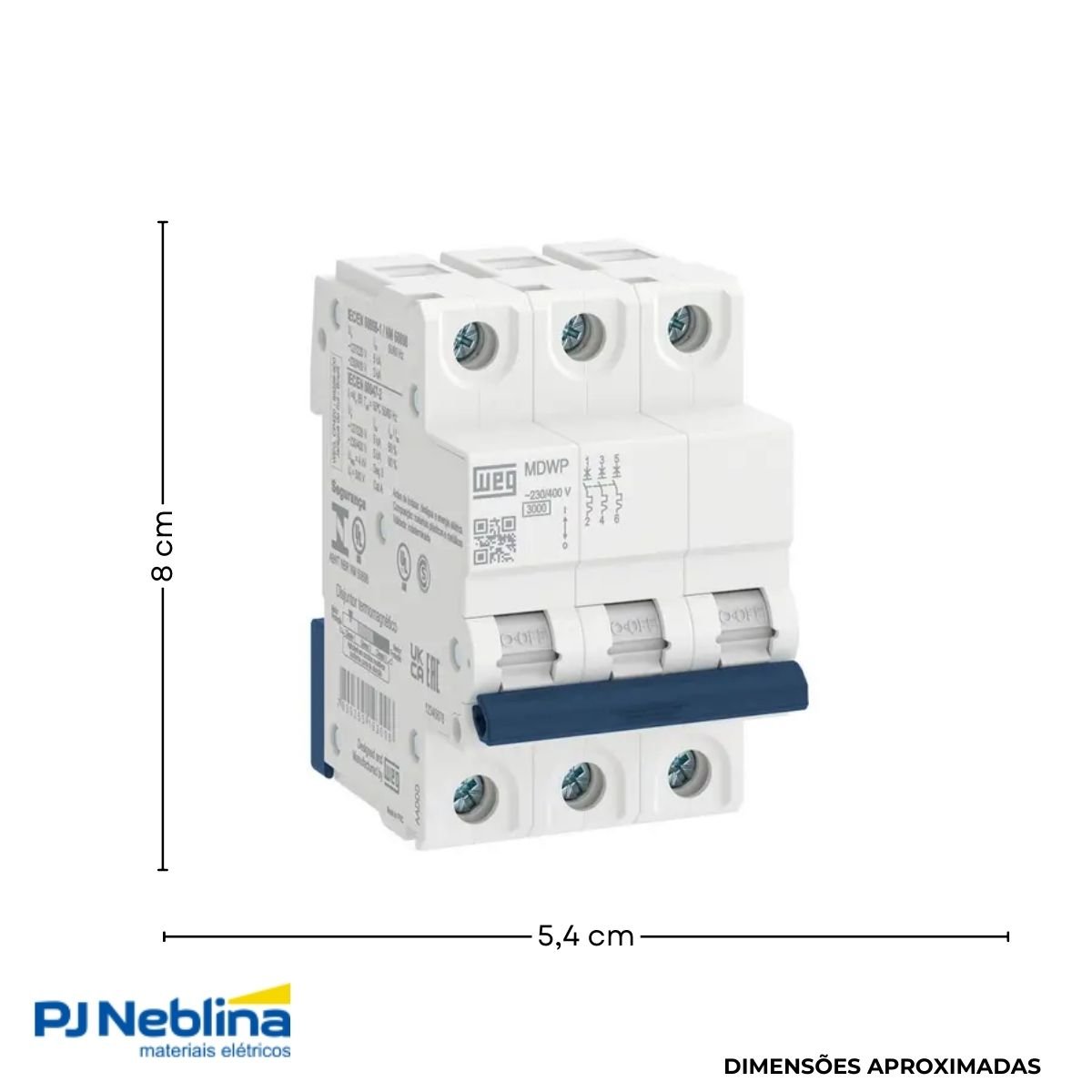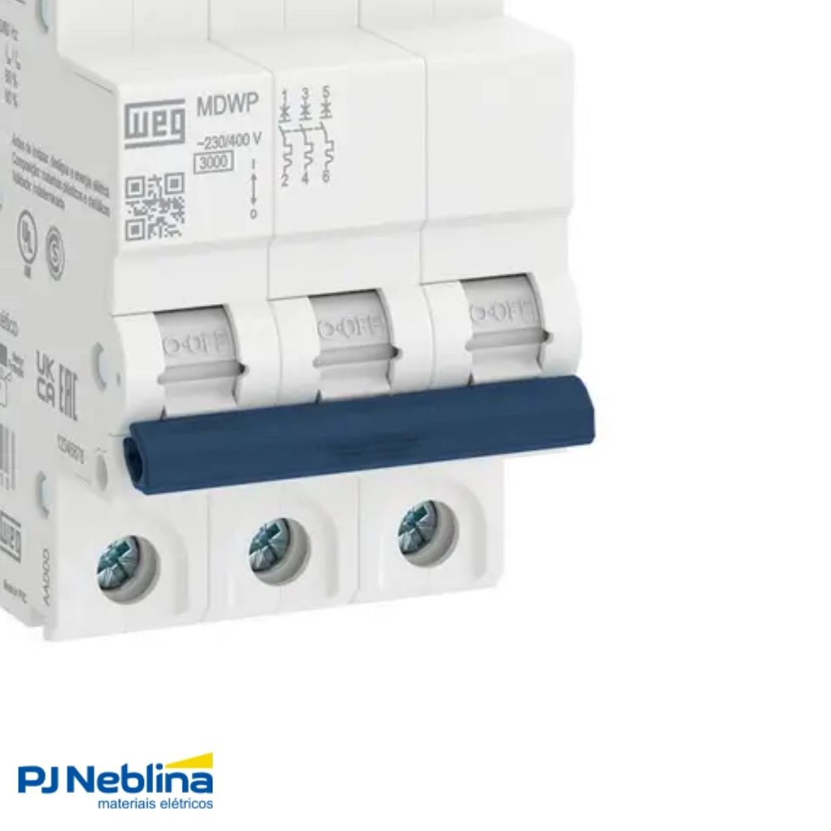 Disjuntor Mini Din Tripolar 2A Curva C 3Ka 230/400V - Weg - Código Fabricante: MDWP-C2-3