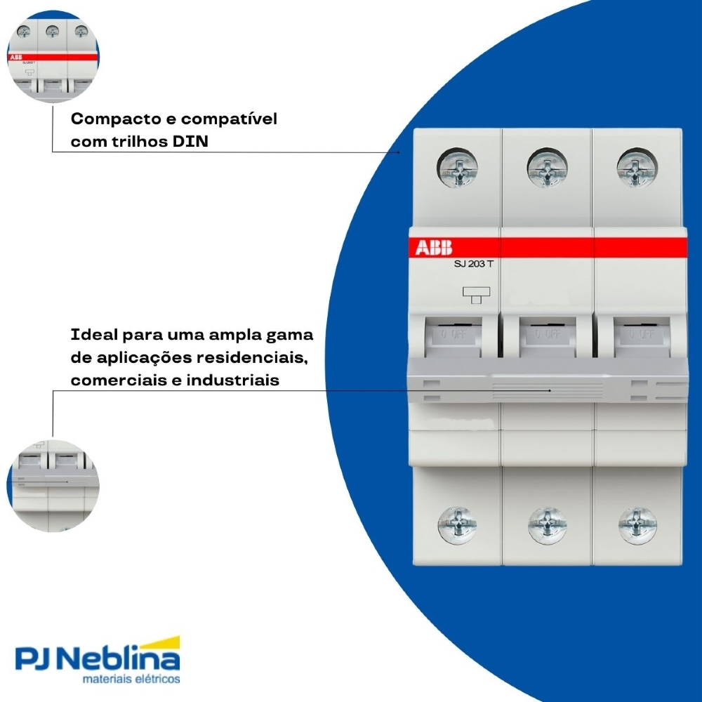 – Tipo: Disjuntor Miniatura (MCB - Miniature Circuit Breaker), tripolares (3 polos).