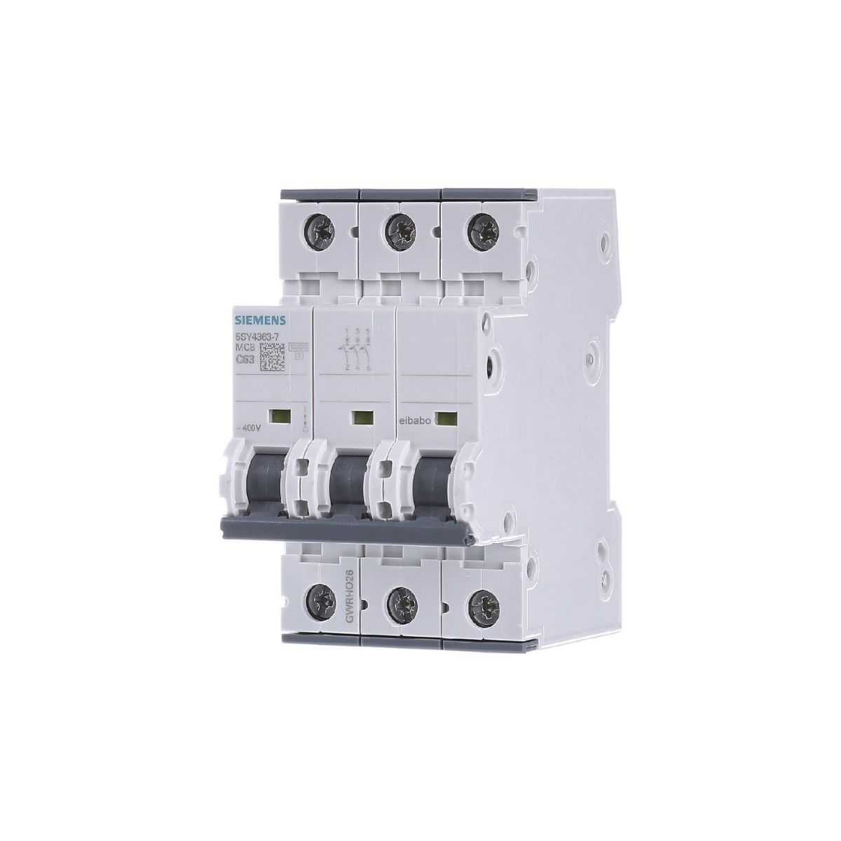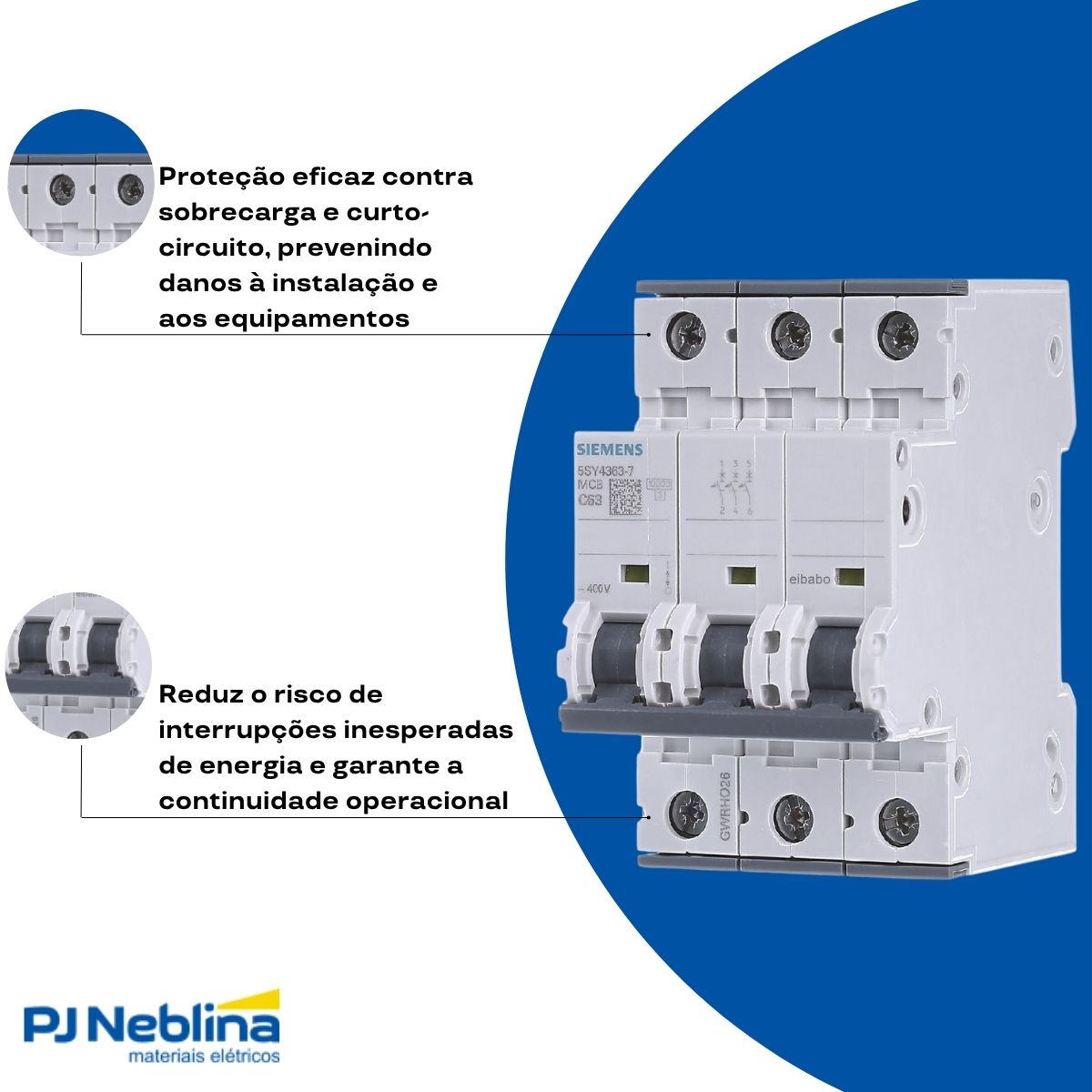 Disjuntor Mini Din Tripolar 63A Curva C 10Ka 400V - Siemens - Código Fabricante: 5SY43637