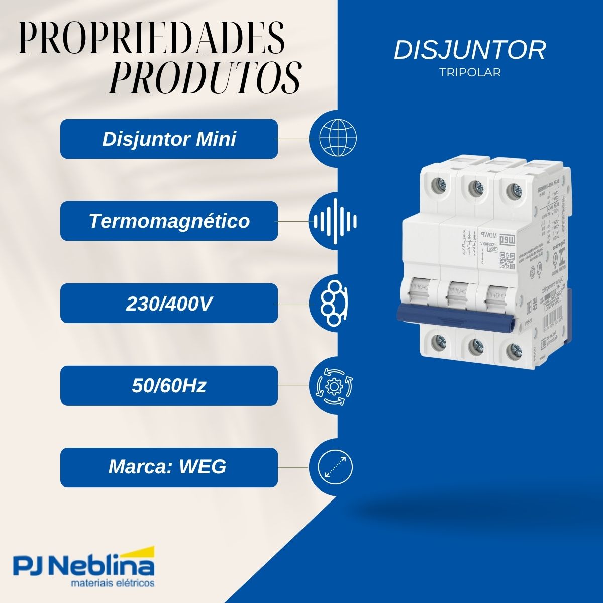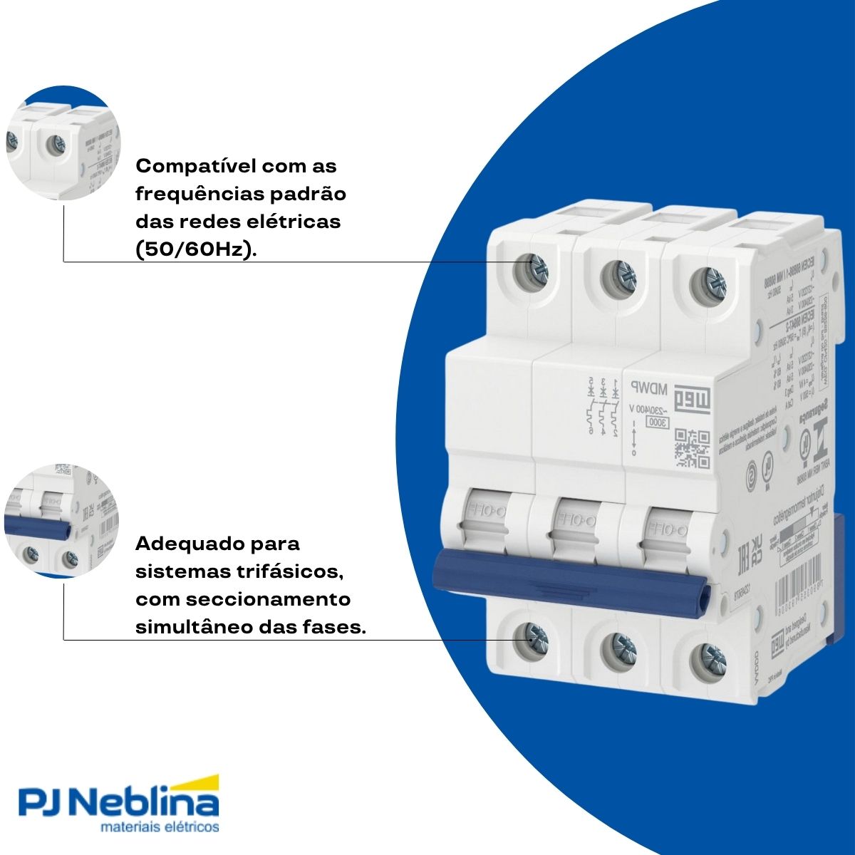 - Número de Polos (Tripolar): Possui três polos, permitindo o desligamento simultâneo das três fases, garantindo maior segurança em sistemas trifásicos.