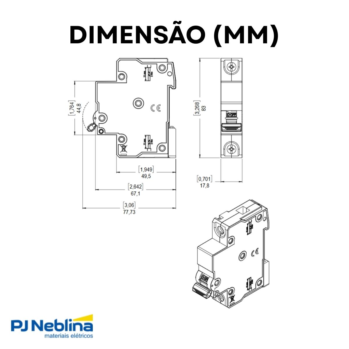 - Mini DIN: Indica o tamanho compacto do disjuntor e seu método de montagem padronizado. Ele é projetado para ser fixado em trilhos DIN (padrão EN 50022)