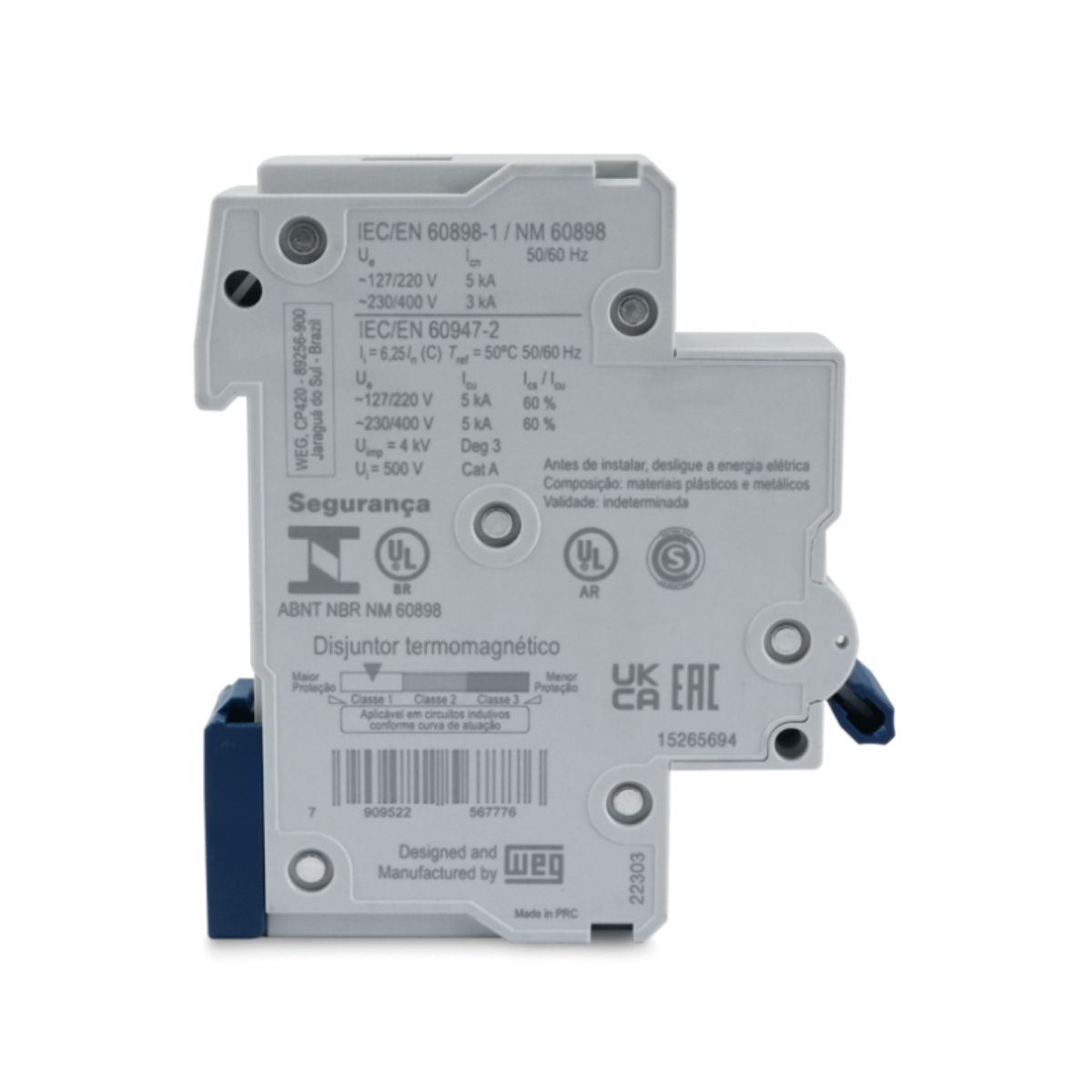 - Capacidade de Interrupção (5kA): Capaz de interromper correntes de curto-circuito de até 5.000 amperes, conforme a norma IEC 60898.