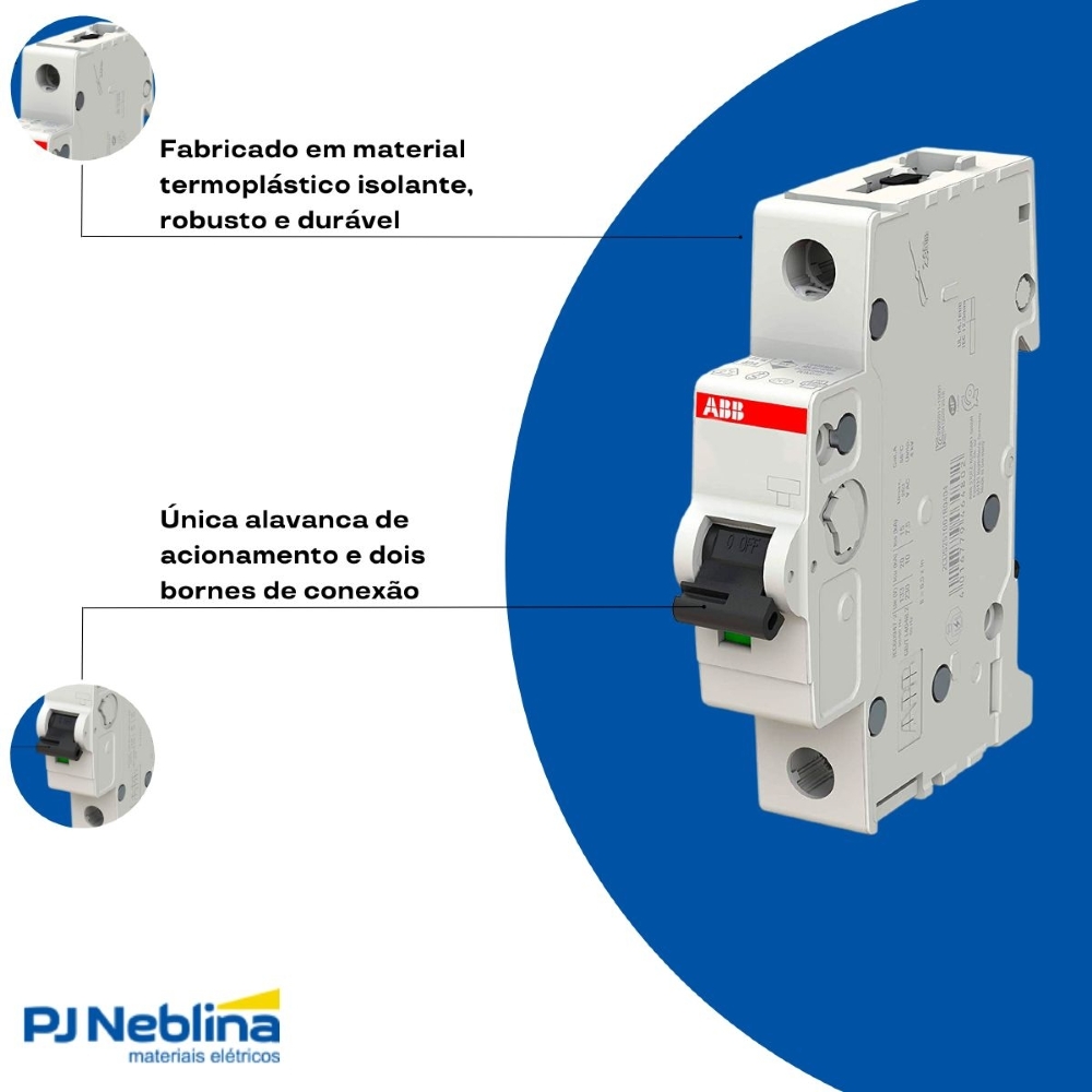 – Tipo: Disjuntor Miniatura (MCB - Miniature Circuit Breaker), com um único polo (unipolar), projetado especificamente para proteção de um condutor fase.