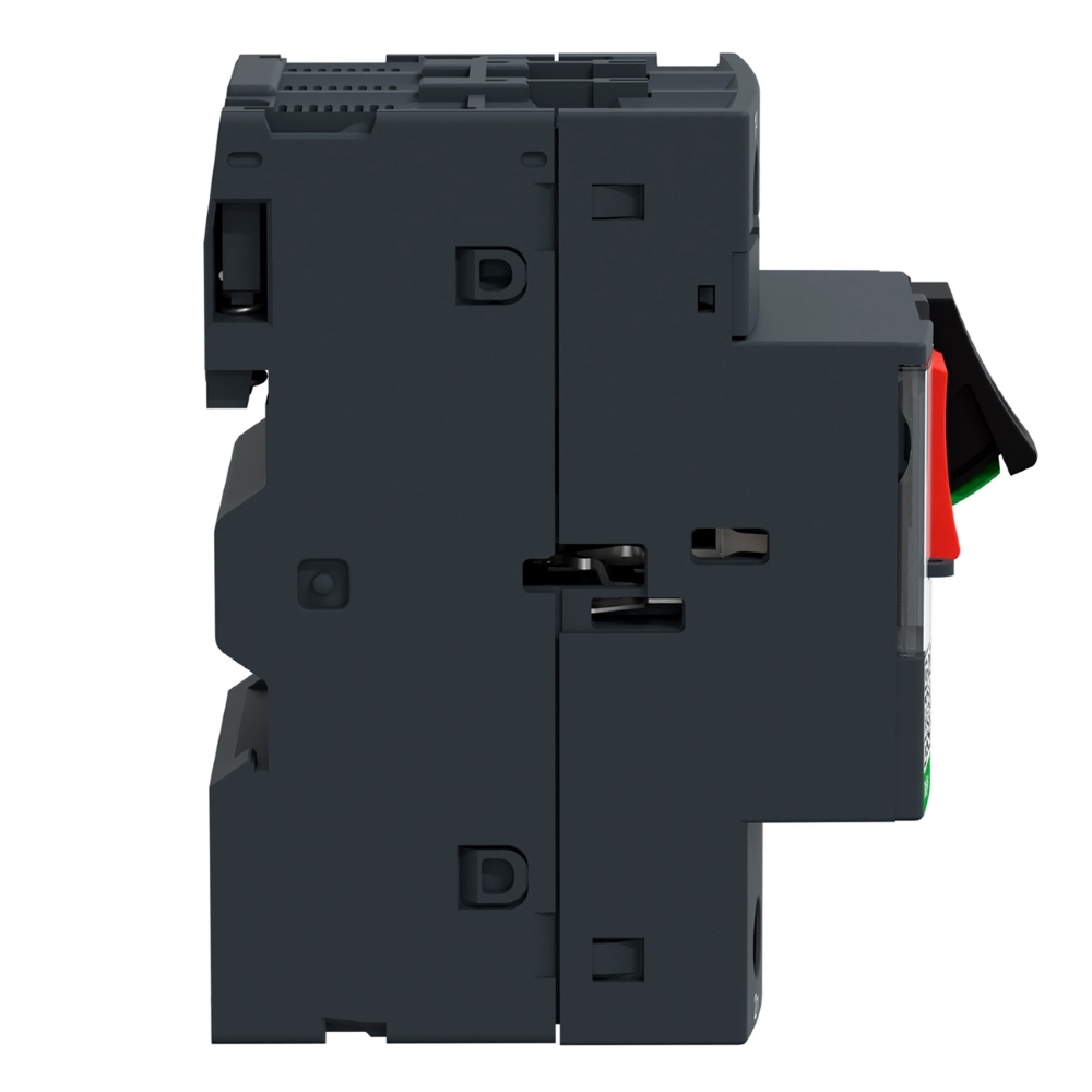 Este produto possui 3 polos, capacidade de 1-1.6A/690V e está destinado para aplicações de motor trifásico 0.37-0.55kW/400V. Fornece uma proteção termomagnética com uma gama de regulação térmica 1-1.6A, disparo magnético a 9xIn e alta capacidade de ruptura Icu 100kA-400V. Além disso, conta com proteção IP20 e conexão por meio de terminais de parafuso. Também permite o controle de inicio/parada por botão de pressão garantido por 100.000 ciclos AC-3.