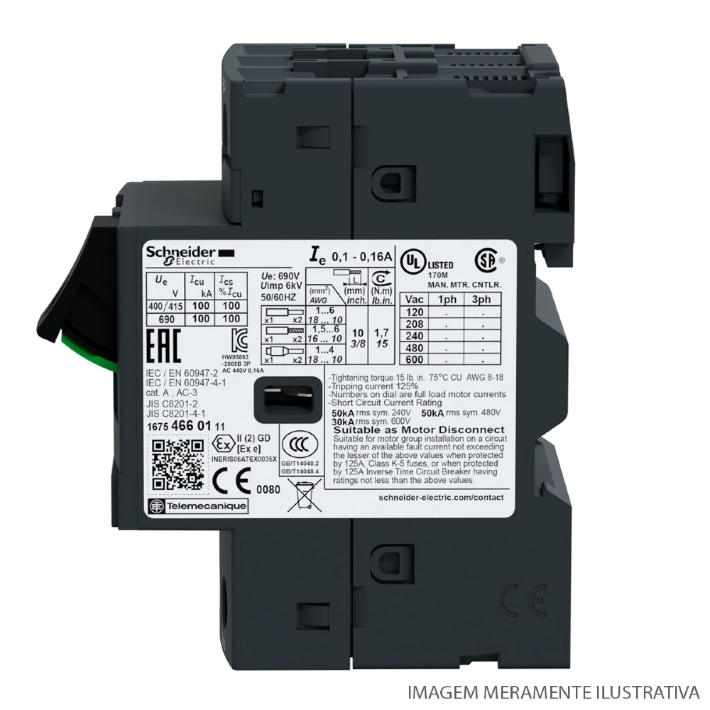 Este produto tem certificação multi padrão (IEC, UL, CSA, CCC, EAC, Marine). Os disjuntores motor Tesys Deca levam o selo Green PremiumTM, que promete conformidade com as mais recentes regulamentações, transparência nos impactos ambientais, produtos circulares e de baixo CO2.