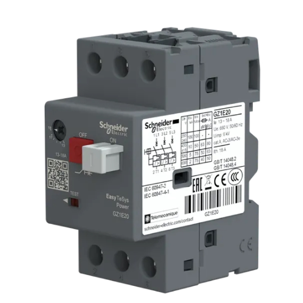 Disjuntor Motor Tripolar 18A 13-18A 440V 10Ka 400/415V 50/60Hz Ip20 GZ1E20 Easypact Tvs Schneider Electric
