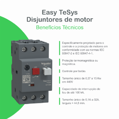 Disjuntor Motor Tripolar 1,6A 1-1,6A 100Ka 400/415V 50/60Hz Schneider Electric