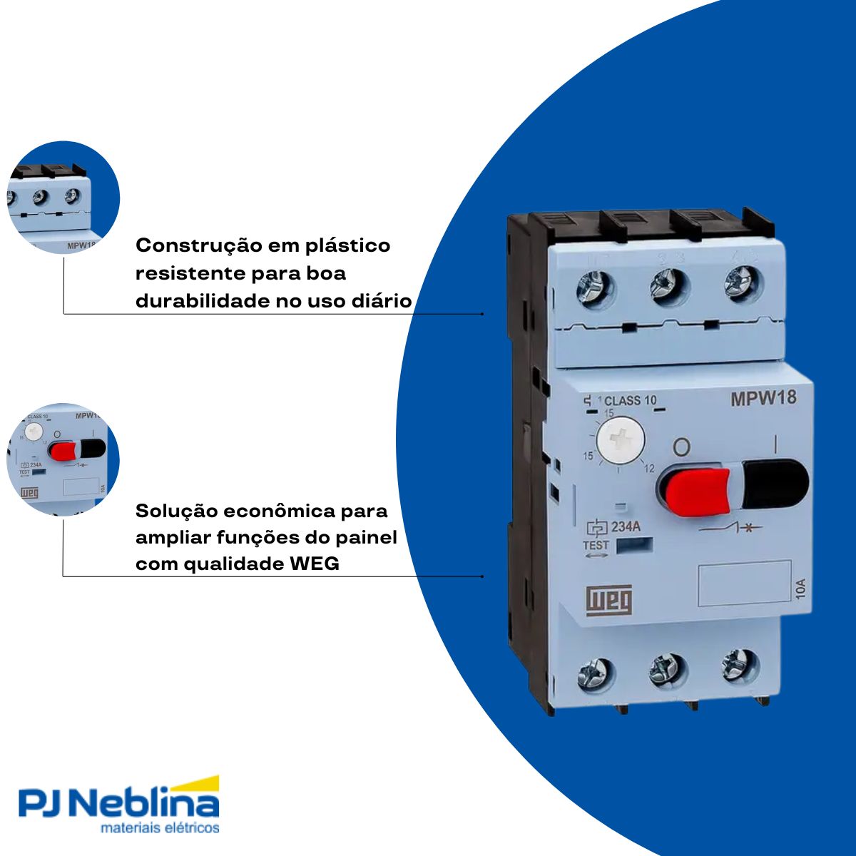 Disjuntor Motor Tripolar 1A 0,63-1A 0,33Cv 380/415V 100Ka 380/440V 50/60Hz - Weg - Código Fabricante: MPW18-3-U001