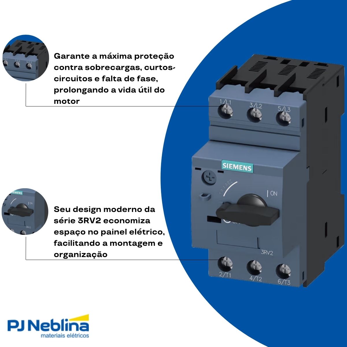 - Marca: Siemens, da linha SIRIUS 3RV2, sinônimo de robustez e segurança.